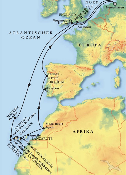 Wenn im Herbst in Deutschland die Wetterlage ungewiss wird, nehmen wir Sie mit auf eine Traumkreuzfahrt Richtung Süden. Kreuzen Sie mit Ihrem Wohlfühlschiff MS Amadea von Bremerhaven zur Blumeninsel Madeira und den sonnenverwöhnten Kanarischen Inseln. Nach einer afrikanischen Stippvisite besuchen Sie Portugals Hauptstadt und den Süden Englands, ehe es für dieses Mal "Auf Wiedersehen Amadea" heißt.