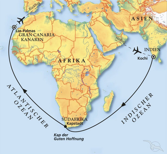 Feiern Sie mit uns Premiere und begleiten uns auf die erste „echte Seereise“ und „Amadea-Familienfahrt“ rund um Afrika. Völlig anders als sonst kreuzen wir nicht von Hafen zu Hafen, sondern feiern das maritime Bordleben mit ganz viel Zeit zum „Seele baumeln lassen“. Zwischen Kochi in Kerala und den Kanaren liegen tausende von Seemeilen, sonnenverwöhnte Seetage und der Äquator gleich zweimal. Zur Halbzeit geht es ums Kap der Guten Hoffnung zum exklusiven Landgang dieser Reise nach Kapstadt, der einzigartigen Metropole am südlichsten Punkt Afrikas. Hier am Tafelberg werden Sie einen zauberhaften Tag mit vielen Tour-Optionen erleben, und auch die berühmte Waterfront ganz nahe am Schiff ist einen Besuch wert, bevor Ihr Kapitän Kurs Kanaren nimmt. „Zum guten Buch lesen“ und ausgiebiger Entspannung während der Bordtage bieten wir Ihnen ein großes Unterhaltungsprogramm mit zahlreichen Überraschungen. Gleiches gilt für unser exquisites gastronomisches Angebot, welches von unserem kulinarischen Chef Fritz Pichler arrangiert wird. Seien Sie unser Gast auf dieser ersten „echten Seereise“ zum verlockenden Sonderpreis.