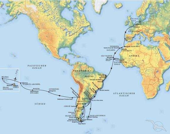 | Vorgesehen sind Passagen am Kap Hoorn, im Beagle-Kanal und am Darwin Gletscher | - | - | |