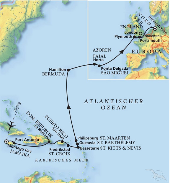 AMA540 Von Jamaika durch die Karibik zu den Azoren - Kreuzfahrt MS Amadea