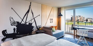 Deluxe-Zimmer: bei gleicher Ausstattung geräumiger, zusätzlich mit Sitzecke & Balkon, zur Seeseite.