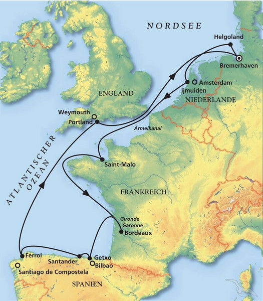 Kreuzfahrt MS Amera: AMR182 An Pfingsten zur Atlantikküste Europas
