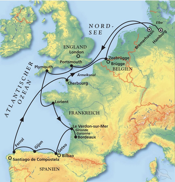 Kommen Sie an Bord von MS Amera und kreuzen mit Ihrem Lieblingsschiff von Bremerhaven zur Palmengesäumten südenglischen Küste, in den Gourmetverwöhnten Norden Frankreichs, zum üppig grünen Nordspanien sowie zur gern besuchten Urlaubsregion an der Belgischen Nordseeküste, ehe es in Hamburg für dieses Mal "Auf Wiedersehen Amera" heißt.