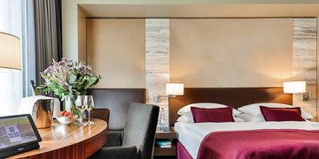 Ein stilvolles & modernes Hotel auf höchstem Niveau, ideal für den gehobenen Anspruch. Es befindet sich in idealer Lage im Stadtzentrum mit sehr guter Verkehrsanbindung, ca. 900 m vom Hauptbahnhof entfernt. Die Zimmer sind geschmackvoll eingerichtet, mit Bad und Dusche/WC, Föhn, Telefon, Flachbildschirm-TV, Kaffee- & Teezubereitung, Safe, Klimaanlage und kostenlosem WLAN. Die Superiorzimmer sind bei gleicher Ausstattung größer. Das Hotel verfügt über 262 Zimmer sowie einem Wellness-Center mit Fitnessclub: Holmes Place Heath Center (gebührenpflichtig, 16 € pro Person und Tag). Das Hotel verfügt über einen Panorama-Lift, einem Restaurant, der bekannten Harry’s New-York Bar und einer Tiefgarage (für die Dauer des Hotelaufenthaltes). Es sind ebenfalls öffentliche Parkhäuser in der näheren Umgebung zu finden. Verpflegung: Reichhaltiges Frühstücksbuffet.