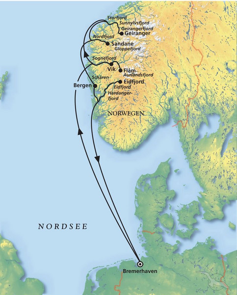 Ihre MS Artania umringt von Segelschiffen, das ist das perfekte Traumpanorama zur SAiL Bremerhaven, Auftakt zu Ihrer Reise nach Norwegen. Die Fahrt durch die südlichen Fjorde des Landes verzaubert den Betrachter immer wieder aufs Neue. An Land laden die kleinen und größeren Ortschaften zum Bummel ein oder Sie lernen Land und Leute auf einem Ausflug noch besser kennen.