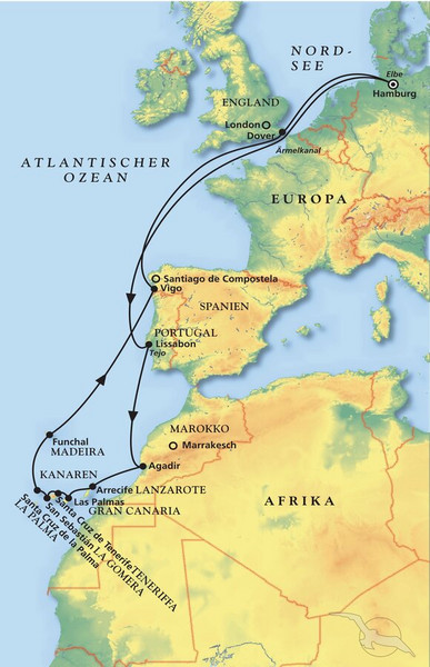 Sonnengeküsste Inseln sind genau Ihr Ding? Dann auf zu dieser Kreuzfahrt mit MS Artania. Ganz bequem und komfortabel kreuzen Sie vom "Deutschen Tor zur Welt" in gemütlichen Seestunden Richtung Atlantik. Sie besuchen Portugals Hauptstadt und machen einen Abstecher ins nordafrikanische Marokko, ehe die wunderschönen Kanarischen Inseln in Sicht kommen. Auch zur portugiesischen Blumeninsel Madeira, ins nordspanische Vigo und zum geschichtsträchtigen Dover führt Ihre Artania Kreuzfahrt, dann heißt es für dieses Mal Abschied nehmen von Ihrem Lieblingsschiff.