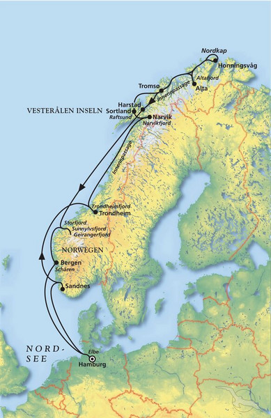 | 18.04. | Honningsvåg / Nordkap / Norwegen | 09:00 | 16:00 |