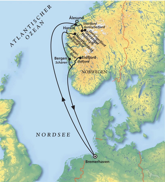 Der Juni ist die perfekte Reisezeit für eine Kreuzfahrt zu Norwegens Fjorden. Kommen Sie an Bord von MS Artania zu dieser wundervollen Fahrt durch zerklüftete Fjordlandschaften, vorbei an majestätischen Wasserfällen hin zu kleinen und großen Ortschaften, die mit norwegischem Flair verzaubern. Natürlich besuchen Sie auch die alte Hansestadt Bergen, die pittoresk zwischen den Hügeln liegt, ehe Sie südwärts mit Ihrem persönlichen Traumschiff Richtung Bremerhaven kreuzen.