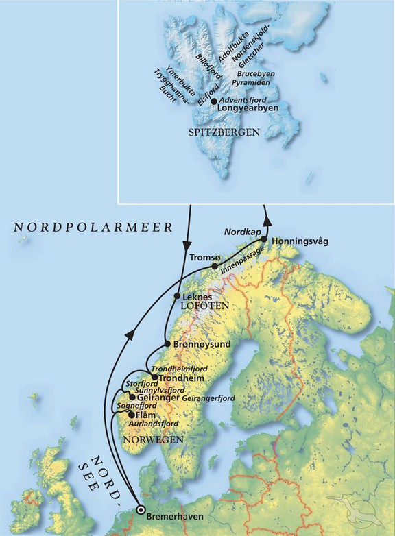 - Über den Polarkreis ans Nordkap und weiter zur Mitternachtssonne nach Spitzbergen