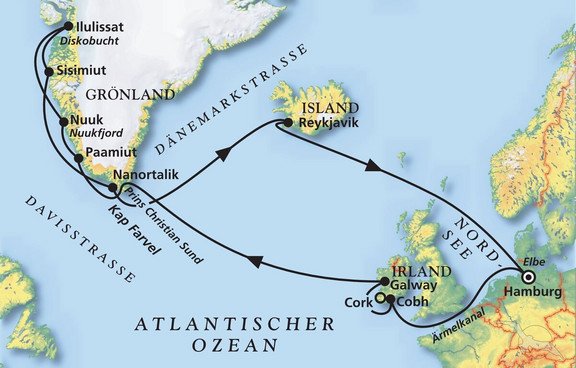 Grönland ist und bleibt ein Traumziel für Kreuzfahrer. Erfüllen Sie sich Ihren Traum und reisen Sie mit Ihrem Lieblingsschiff Artania gen Norden mit Abstechern in Irland und Island zum "Grünen Land", das auch im Sommer mit Eis- und Gletscherpanoramen verzaubert. Ihr Kapitän sorgt dafür, dass Sie die schönsten Seiten Grönlands genießen können, während die Schiffscrew Sie mit kulinarischen Leckerbissen und hervorragendem Service verwöhnt.
