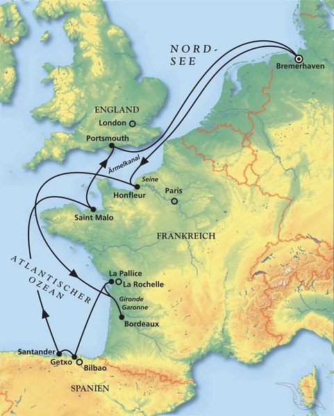 - Von Honfleur nach Bordeaux und weiter bis Bilbao