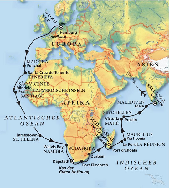 Kreuzfahrt mit MS Artania: ART436 Rund um Afrika zu den Inseln des Indischen Ozeans