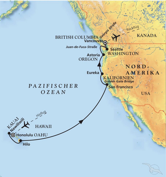 - Auf Premierenroute von Honolulu auf Hawaii bis nach Vancouver in Kanada