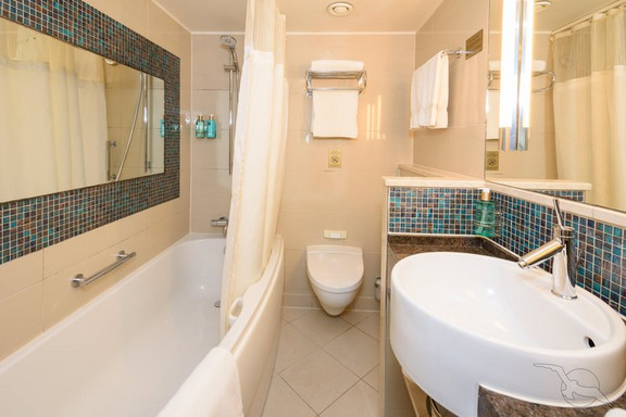 SAT-TV (Empfang abhängig vom Fahrgebiet), individuell regulierbare Klimaanlage, Telefon, Minibar, Safe, Fön, Schminkspiegel.