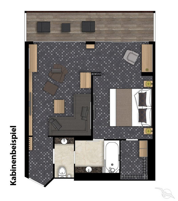 Kabinengröße ca. 48 m² inkl. Balkon