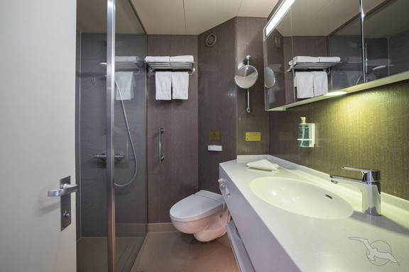 Es gibt 2 großräumige Doppelschränke, Sofa mit Tisch und Sessel, Spiegelkommode mit Stuhl und mehreren Schubfächern, Dusche/WC, Bademantel, Fön, SAT-TV (Empfang abhängig vom Fahrgebiet), individuell regulierbare Klimaanlage, Telefon, Minibar, Kaffeemaschine, Safe, (WLAN nicht inkl., Empfang abhängig vom Fahrgebiet), Wohnwand mit zusätzlichen Schubfächern.