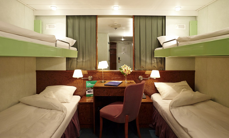 Vier-Bett Kabinenbeispiel innen, mit Pullmannbetten ca. 13 m² - Kategorie 1 - Deck 2